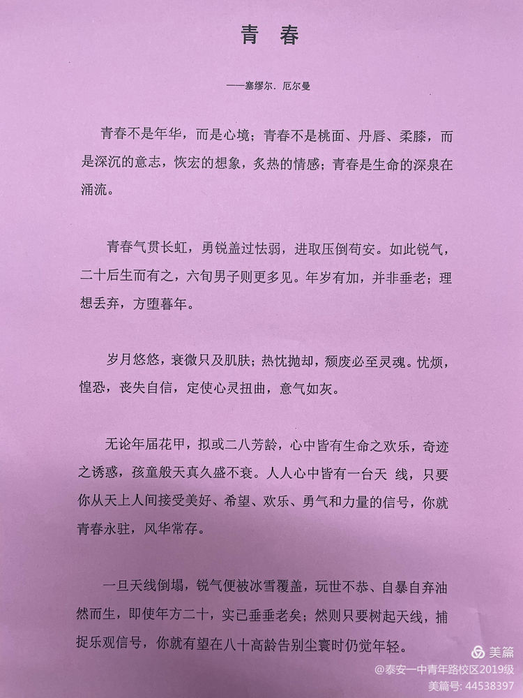 通过朗读塞缪尔·厄尔曼的《青春》,同学们感受到只有保持健康的心理状态,坚定自己的理想信念,才会青春永驻,风华常存。
